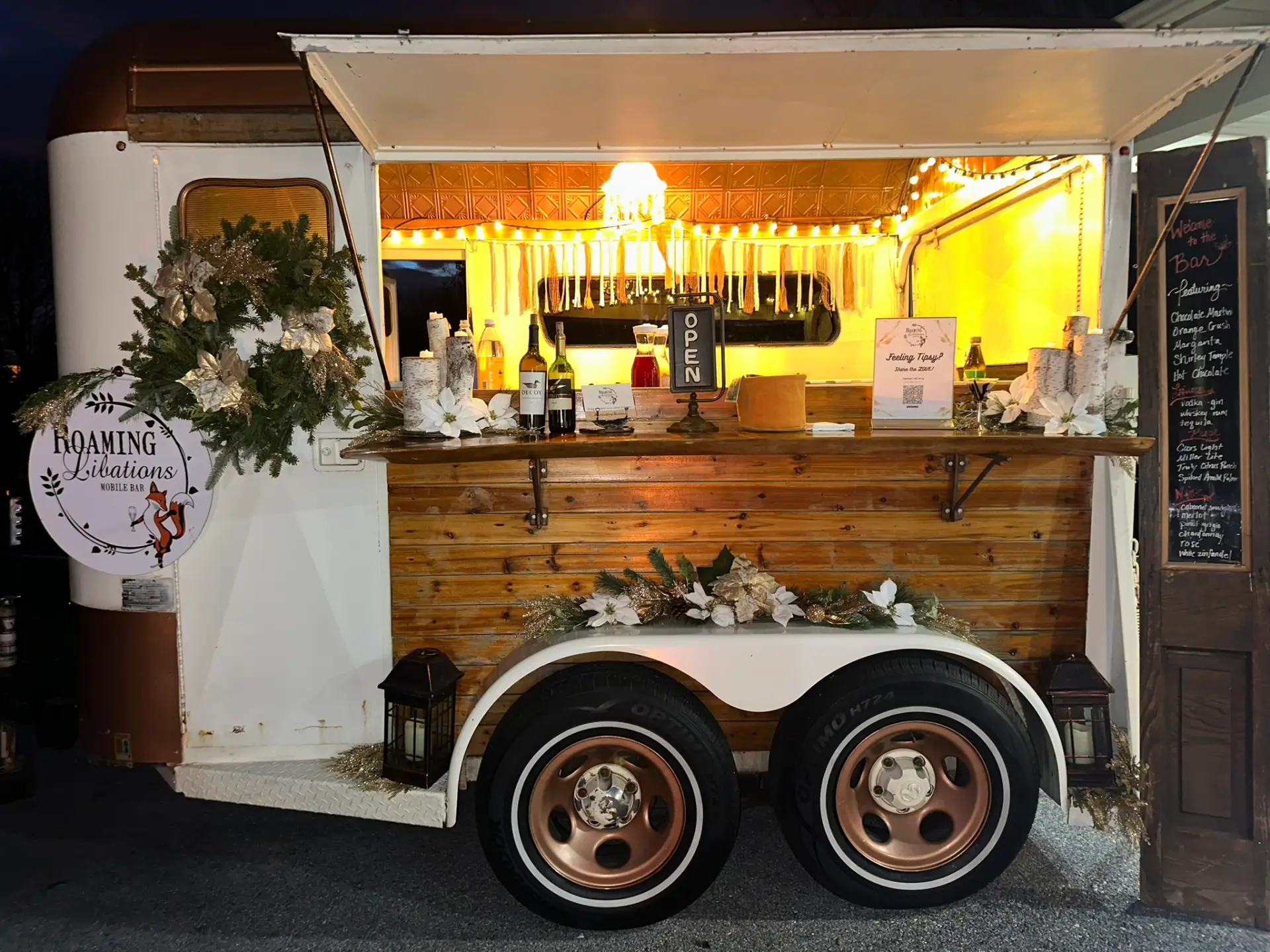 Our gallery showcases real events featuring our mobile bar trailer, professional bartenders, and curated cocktail menus designed for weddings, barn venues, backyard celebrations, and corporate gatherings.